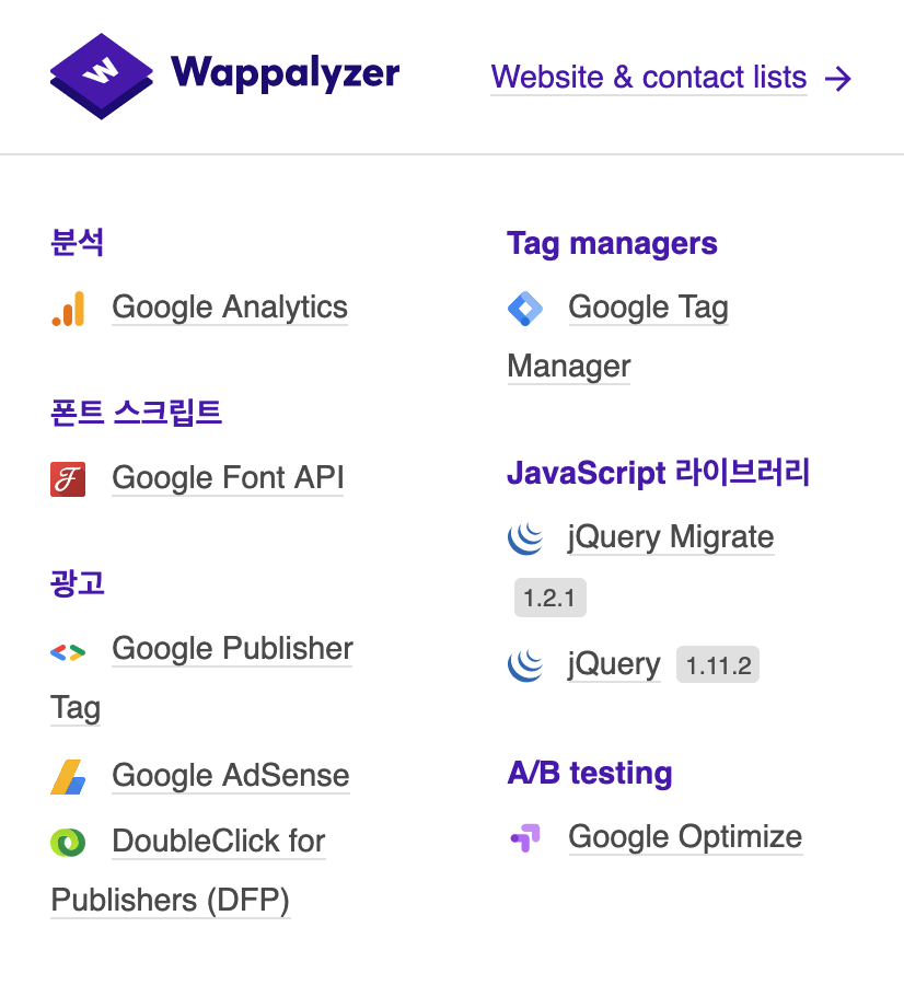 크롬 익스텐션 Wappalyzer
