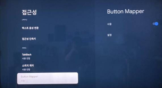 설정 > 시스템 > 접근성 > BUTTON MAPPER > 사용